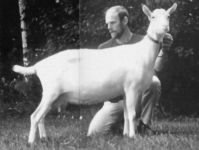 | Gerard Koekkoek met zijn Liesje 15, uiteindelijk de stammoeder van de hele geitenlijn. |