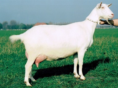 een goed ontwikkelde, gelijnde geit. Haar uier