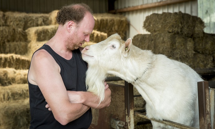 “Ik ben heel open over de gezondheid van mijn dieren”, vervolgt Jan. “Als een geit lammert, mail ik dat naar mijn collega’s in de geitenwereld. Maar ik laat het ook weten als mijn dieren iets onder de leden hebben, bijvoorbeeld toen anderhalf jaar geleden een van mijn geiten verdacht werd van CL (caseous lymfadenitis, ook bekend als ‘bultenziekte’). De meeste andere geitenhouders praten niet over ziekten. Zere bekjes bijvoorbeeld, daar hoor je vaak pas achteraf iets over. Ik zou willen dat de geitenwereld transparanter was. Als iedereen alles stil houdt, worden mensen voorzichtig. Juist omdat ik altijd zo open ben, kon ik direct nadat ik de CL-vrij-status terug had mijn geiten alweer verkopen. Het heeft me zelf ook verbaasd hoe makkelijk dat ging.”