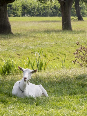 Deze zomer gingen Jans geiten voor het eerst naar buiten. Idee van zijn broer, vertelt hij. Witte geiten worden in de buitenlucht vaak iets minder wit, maar omdat ze toch niet meer naar keuringen gaan, is het niet nodig de geiten enkel in de stal te houden.