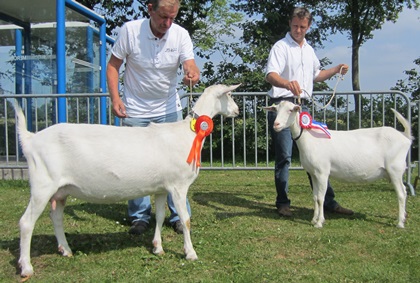 Geiten heeft Durk altijd gehad. "Mijn vader had vroeger allerlei dieren. Koeien, varkens, schapen en dus ook geiten. Ik heb wel een periode gekend dat ik andere dingen belangrijker vond, maar geiten zijn er altijd geweest. Je ziet het vaak op deze manier met onze hobby. Het gaat van vader op zoon. Mijn vader stond vroeger in de keuringsring met de vader van Jan de With. Het is leuk dat je zelf jaren later elkaar weer tegenkomt." Durk maakte sinds 2007 deel uit van Fokcommissie Wit. Hier is onlangs een eind aan gekomen, omdat hij het druk heeft met zijn werk. "Het was altijd gezellig. Vooral de vergaderingen bij Bertus Hutten thuis," blikt Durk terug. "Dan zit je dus vrijdags om vijf uur ’s middags in de auto richting Beilen. Even Jan de With oppikken in Lexmond, vergaderen en een uur of twaalf terug naar hier. Nog even geiten kijken bij Jan. Zo kwam het wel eens voor dat ik om drie uur ’s nachts pas thuis was." Dat hij gestopt is met de fokcommissie wil niet zeggen dat Durk niet meer actief is in de geitenbeweging. "Ik help ook bij het organiseren van de VEBO-keuring en ben voor onze eigen vereniging nog penningmeester." |