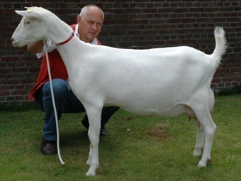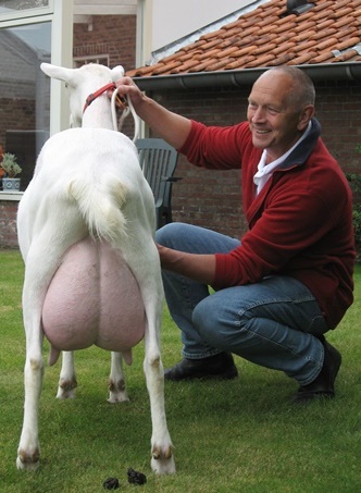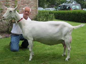 Zijn laatste topper, Marijke 175, is inmiddels gedekt bij Goffe de Boer. "Marijke 175 is een showgeit die altijd goed staat. Ze is wel iets scherp," voegt hij er kritisch aan toe. Want een geit als Annemiek is niet zomaar gefokt. |