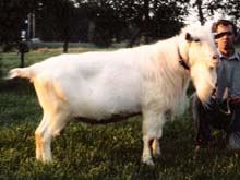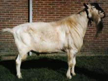Lenzeh, een bok die hij zelf fokte. ‘Dat is wel een apart verhaal. Toen Lenzeh een boklam was, had ik hem aan Bierman uit Nijensleek verkocht. Ik schaamde me een beetje toen ik het bokje afleverde. Het zat weliswaar goed in elkaar, maar was maar matig ontwikkeld. Toen ik een jaar later het dier kwam bekijken kon ik mijn ogen niet geloven. Lenzeh was uitgegroeid tot een bok met een schofthoogte van 95 cm.’ Lenzeh fokte volgens