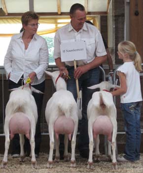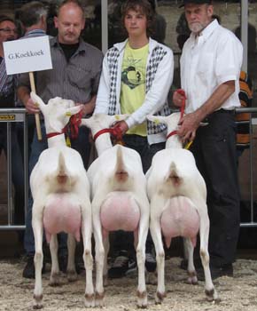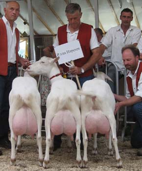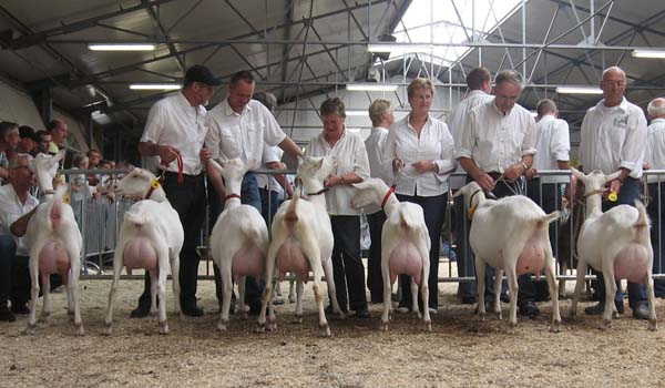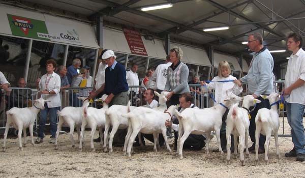 Bij het kampioenschap van de Witte melkgeiten stalen de Marijkes van P. van Haperen uit Gilze de show. Uiteindelijk bleven vier Marijkes bij de laatste vijf geiten over. De sterke achtjarige Marijke 90 (vader: Germ K) prolongeerde haar titel en behaalde voor Van Haperen voor de vierde keer op rij het kampioenschap. In 2008 werd B. Hutten uit Beilen reservekampioen met Riethoeve Viola 62. Door een blessure aan haar poot kon ze dit jaar niet meedoen, maar de fokker had met stalgenote Riethoeve Viola 69 (vader: Jaap 6) een prima vervangster en deze driejarige geit nam de beker over.
