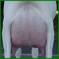 Een sterke, goed zichtbare band onder in het uier die hoog doorloopt in het achteruier.