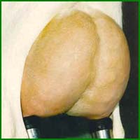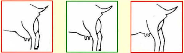 De uierbodem ruim boven de hak.
