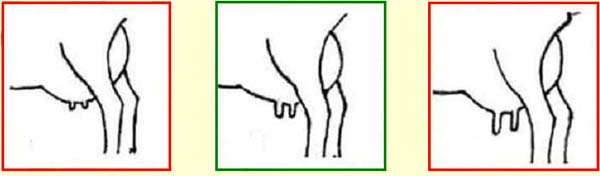 Correcte speenplaatsing, speenlengte, ophangband en uierdiepte.