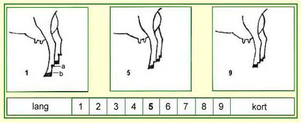 De kootlengte is de afstand tussen de bijklauw (a) en de kroonrand (b).
